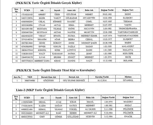 Kararın yayımlanmasıyla birlikte, mal varlıkları dondurulan yabancı uyruklu 16 kişinin isimleri kamuoyuyla paylaşıldı. Ancak isimler ve detaylar kişisel bilgilerin korunmasına yönelik hassasiyet nedeniyle kısıtlı olarak sunuldu.